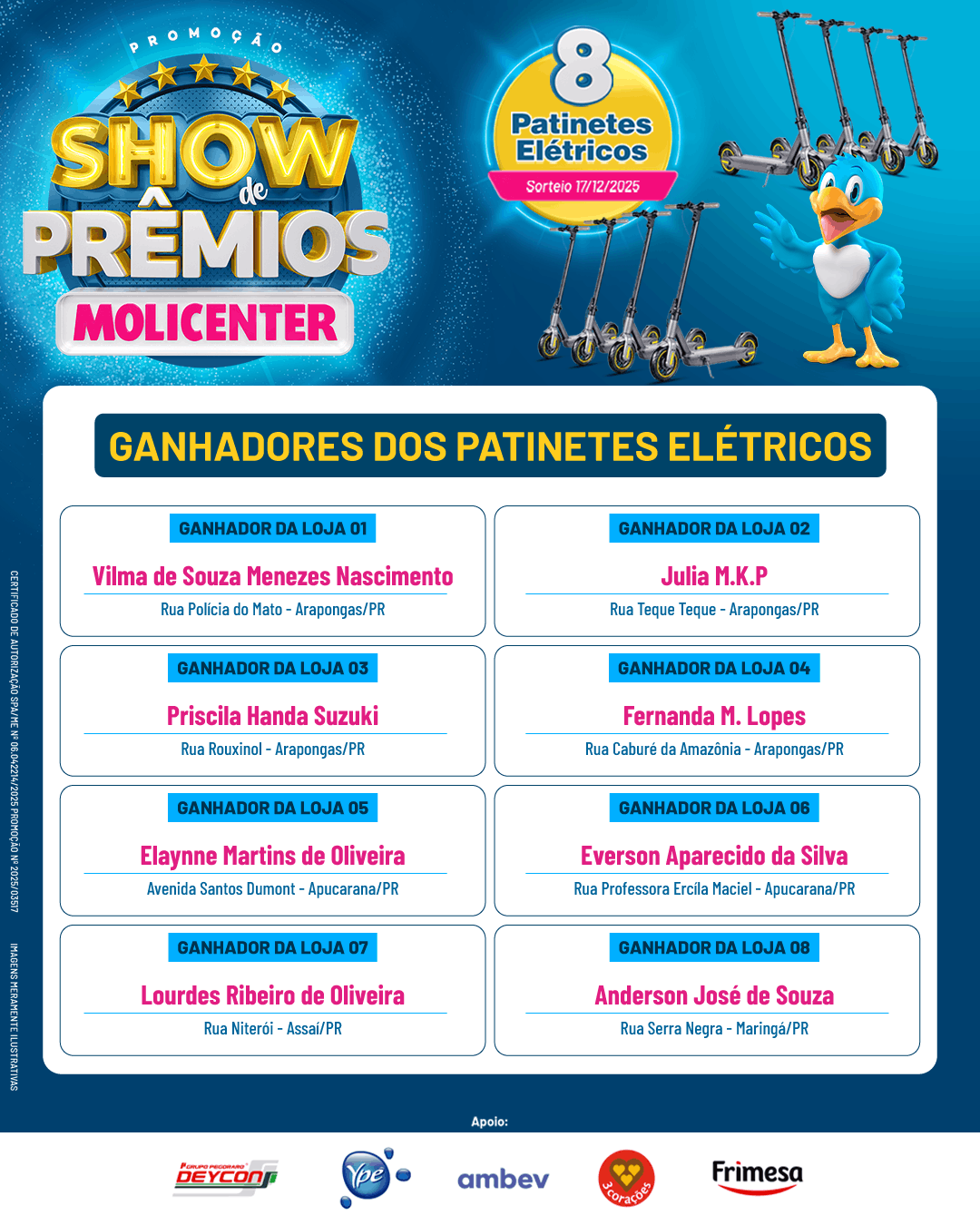 Ganhadores da Campanha: